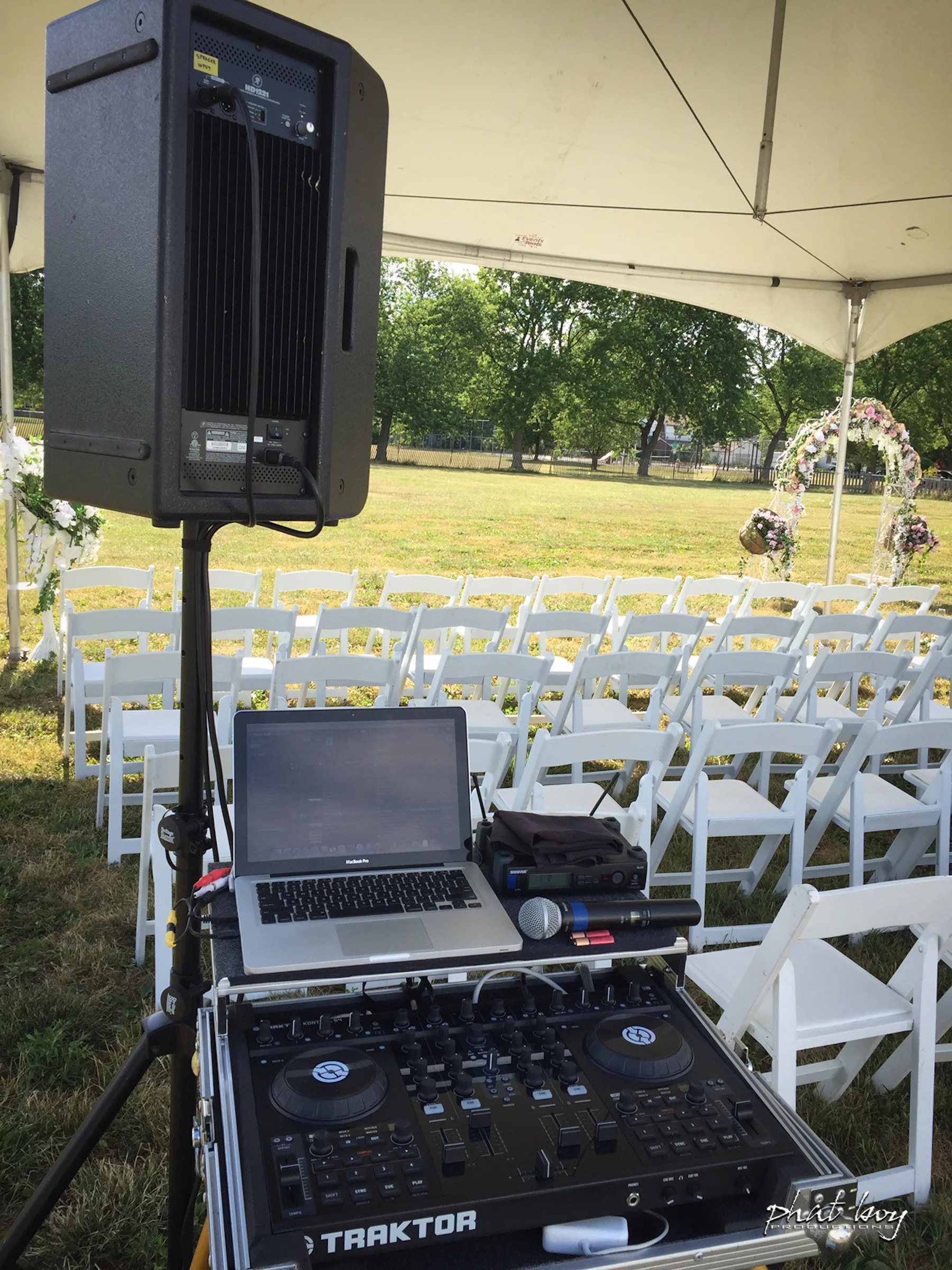 Can be used if the ceremony or cocktails take place in another area. Includes a sound system, music, and cordless microphone. Includes 1/2 hour of DJ service before guests arrive and the length of ceremony.