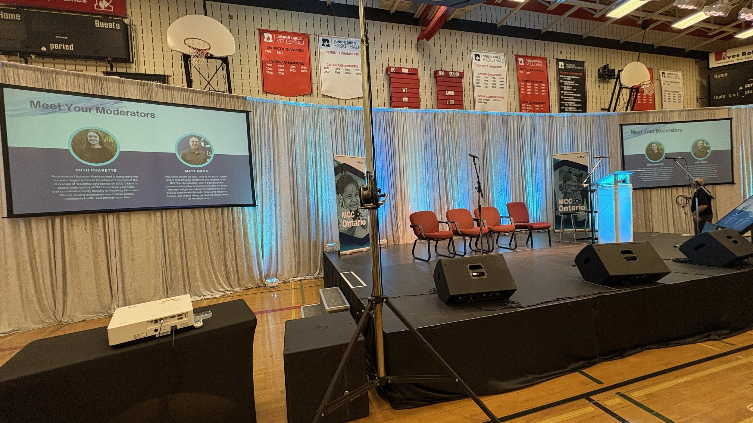 Various samples of local Corporate set-ups showcasing different rental options: professional sound, lighting, staging, and multi-media